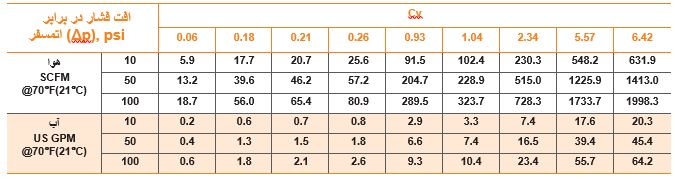 در خصوص جدول بالا لازم است گفته شود که محاسبه میزان فشار با فشار ورودی 1000psi معادل (69 بار) می باشد.