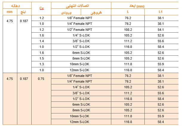 ویژگی های این مدل از شیرآلات ابزار دقیق اس لاک به شرح زیر است :