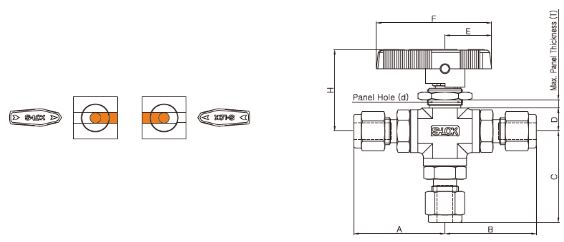 شیرآلات ابزار دقیق اس لاک SFBV60 سه راهه برای حرکت دادن و تغییر مسیر از طریق پورت زیرین و هدایت آن به بیرون از دو پورت خروجی ، طراحی و ساخته شده است.