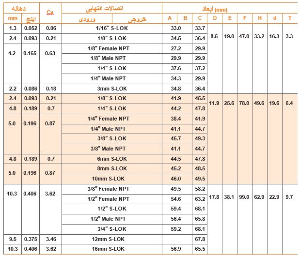 تمامی ابعادی که در جدول بالا برای شیرآلات ابزار دقیق اس لاک سری SFBV60 نشان داده شده ، یک مرجع می باشد و قابل تغییر است.