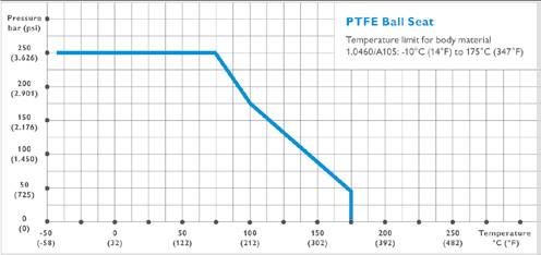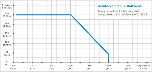 مقادیر دما – فشار شیر بال ولو استیل در نمودار زیر نشان داده شده است :