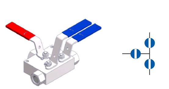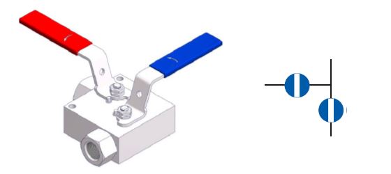 منیفولدهای شیر بال ولو استیل بلاک اند بلید دوتایی ترکیبی از شیر بال ولو استیل جدا از هم اولی و دومی و یک شیر بال ولو استیل یا شیر نیدل ولو استیل تخلیه/خروجی انتخابی بر روی یک بدنه برای عملیات هایی تا 10,000PSI معادل (689 بار) می باشند. همچنین استاندارد اتصالات انتهایی 1/2 NPT می باشد.