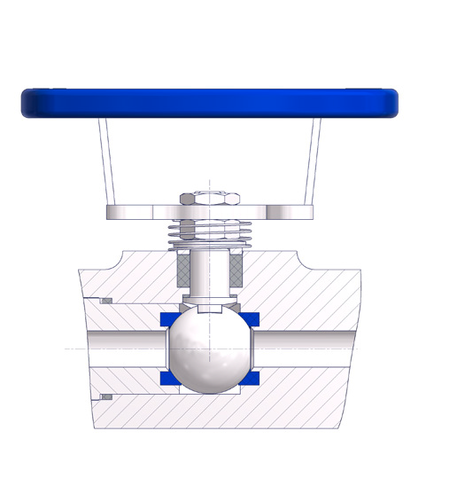 طراحی رزوه دار شیر بال ولو استیل – میله استوانه ای شکل به کار رفته در شیر بال ولو استیل = پکینگ