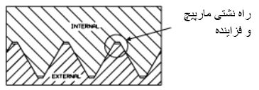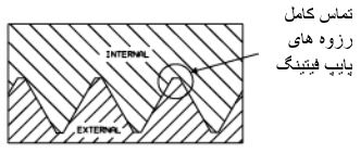(شکل شماره 1) - رزوه NPT : تماس در تاج و پایه حاصل نشده است، اما در پهلوها و طرفین تماس حاصل شده است.