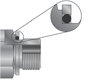 متد های آب بندی اضافی از قبیل آب بندی لاستیک EO که در شکل شماره 6 نشان داده شده است ، بر روی پایپ فیتینگ قابل استفاده می باشد. این پایپ فیتینگ های BSPP برای رزوه در پورت BSPP مادگی طراحی شده اند. بنابراین آب بندی با متد فوق الذکر ایجاد شده است، نه با رزوه های پایپ فیتینگ. هم چنین این موضوع اهمیت دارد که با این رزوه های پایپ فیتینگ BSPP آب بندی بر روی سطح پورت اتفاق بیفتد، نه در یک واشر O- رینگ یا لبه ی پخ که با رزوه های مستقیم SAE و ISO 6149 انجام می شود.